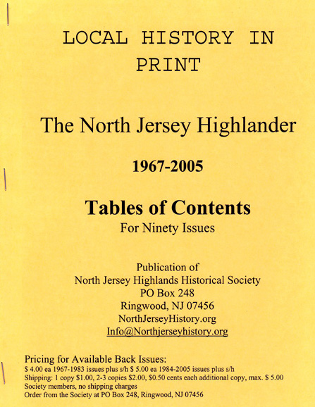 Local History in Print: The North Jersey Highlander, 1967-2005Table of Contents for Ninety Issues With pricing for back issues |